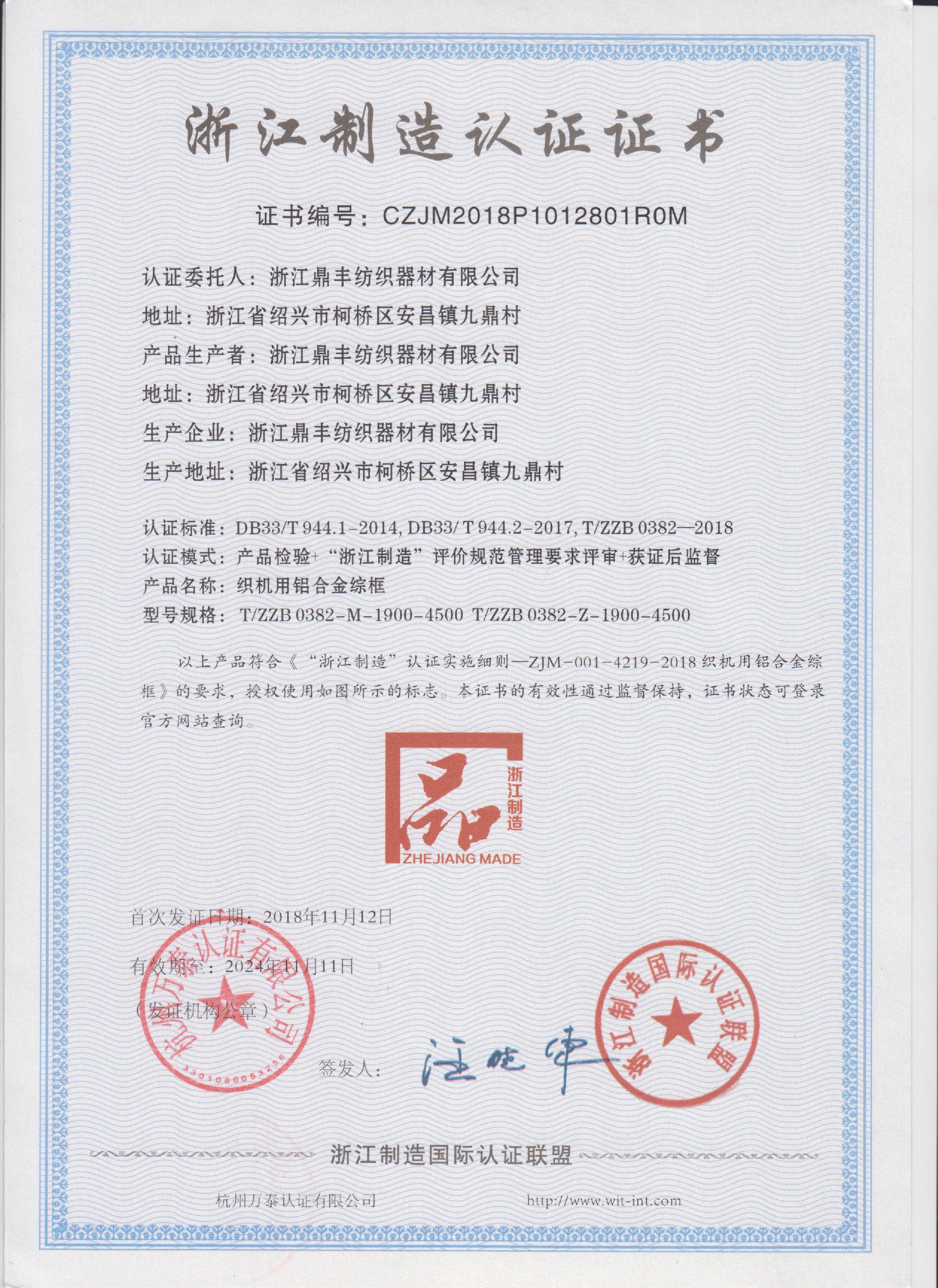 1、貴公司是一家專業(yè)生產(chǎn)各類無(wú)梭織機(jī)鋁合金鋼筘、綜框、鋼片綜、停經(jīng)片、經(jīng)軸、織軸和卷布輥等產(chǎn)品及配件的民營(yíng)企業(yè)。公司成立30多年迅速發(fā)展、占領(lǐng)市場(chǎng)的秘決是什么?余定雅:是高品質(zhì)的產(chǎn)品,完善的售后服務(wù)和大規(guī)模的生產(chǎn)能力保證了浙江鼎豐紡織器材有限公司的產(chǎn)品銷售量在國(guó)內(nèi)獨(dú)占鰲頭。為了與全球市場(chǎng)經(jīng)濟(jì)接軌,鼎豐紡